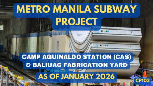 - Metro Manila Subway Project – MMSP-CP103 Progress Video as of January 2026📸: https://www.facebook.com/gersom.jose Our Official Links: #sumitomomitsuiconstructioncoltd#SMCC#MMSP#MMSPCP103#MetroManilaSubwayProject#MetroManilaSubwayProjectContractPackage103#CampAguinaldoStation#AnonasStation#BaliuagYard